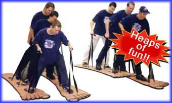 Bigfoot Racers are hilarious to watch and fun to participate in. Teamwork and coordination is the key to winning the race and getting them to move. It looks so simple but trying to get 3 people to work in unison is harder than you would think, A great and inexpensive hire for team building and family fun days, have a Bigfoot knockout competition at your next picnic day or corporate event.