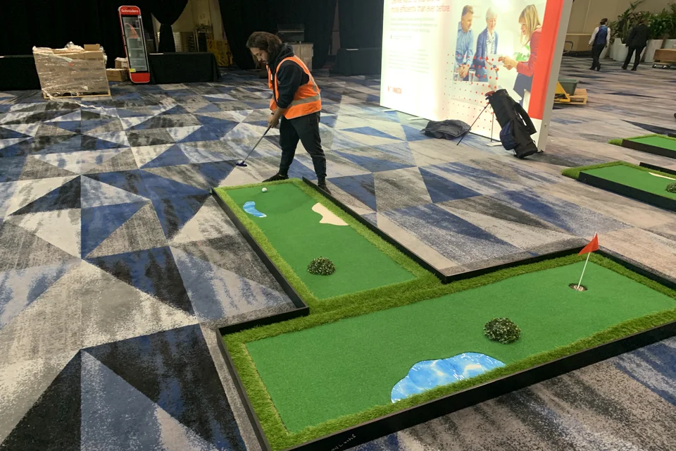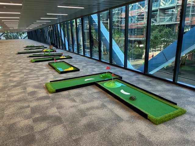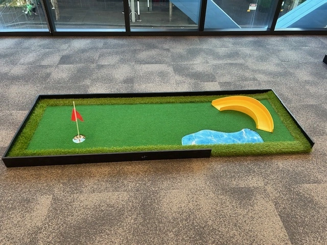 **Hire Options:**Available to DIY hire, Planet can deliver to your venue, set the greens up, and collect them when you're finished. You also have the option to collect it from our warehouse and save the delivery fees. We have hire options for 1, 3, 6 or 9 holes and we can supply left-handed and right-handed putters to suit all players if you let us know in advance. There is always one L-shaped hole and one T-shaped hole included. We also have our fully supervised option, where a Planet staff member will stay and supervise the course. Fencing around the course can also be provided.