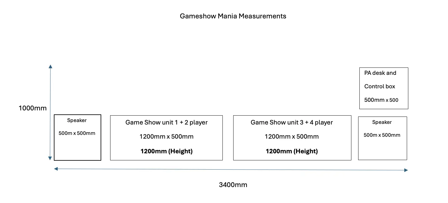 Game Show Mania is the ultimate game show experience. It can be configured to either two or four player positions and includes flashing lights, electronic scoring, individual player microphones, buzzers, lock out circuitry and sound effects! This set up is ideal for corporate events, team building days, or school quiz show challenges. If you have an existing PA system we should be able to connect into this, otherwise we can provide this as an additional hire option.