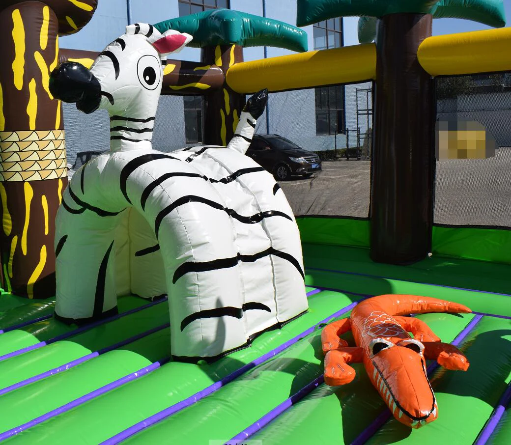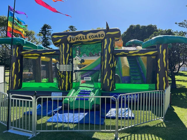 READY, SET, RUMBLE! This is no ordinary jumping castle, get ready torumble in the jungle. Like an African safari, watch out for lions, monkeys, giraffes, and crocodiles, while you run under the zebra’s legs, fly down the slide, and play with the built-in basketball hoop. It’s so full of action the adults will want to jump on too. This new inflatable is a MUST for any school fete, community event, or private party.