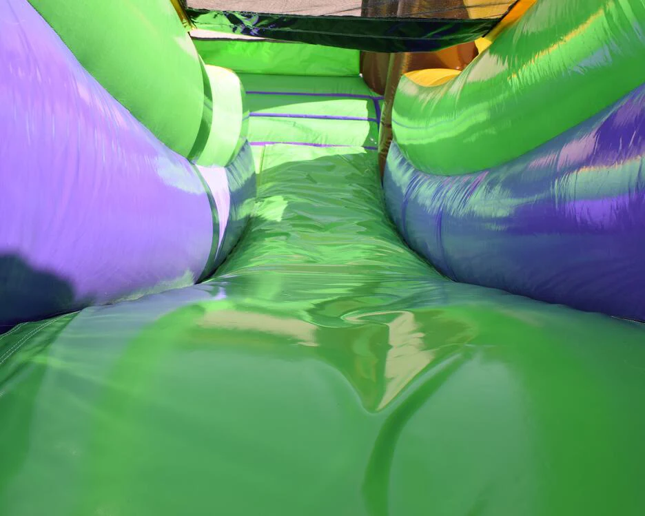 **Ride Setup:**Being one of the largest bouncy castle combos on the market, this may not suit every event space. This giant inflatable is one large piece, meaning we need to be able to drive the truck directly into position to unload this article. If it is all flat, level access we may be able to flatbed trolley this, but usually this is suited to large outdoor venues or warehouse spaces with great access. It will take 3 of our strong staff to unroll and position this ride, as well as 2 powerful blowers that require a standard power point each to inflate the ride.