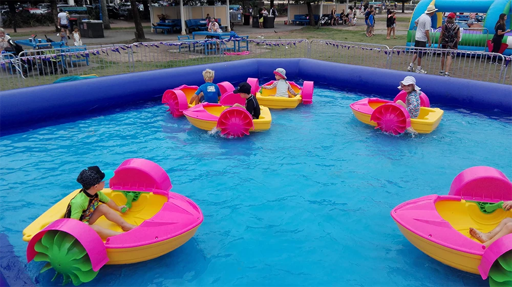 Setup Requirements: The pools used need a flat and level surface and note the water from the pool will need to be drained after the event, therefore please choose a location where there is sufficient drainage or a grass area. You can also hire the Paddle Boats only and use them in your backyard pool.
