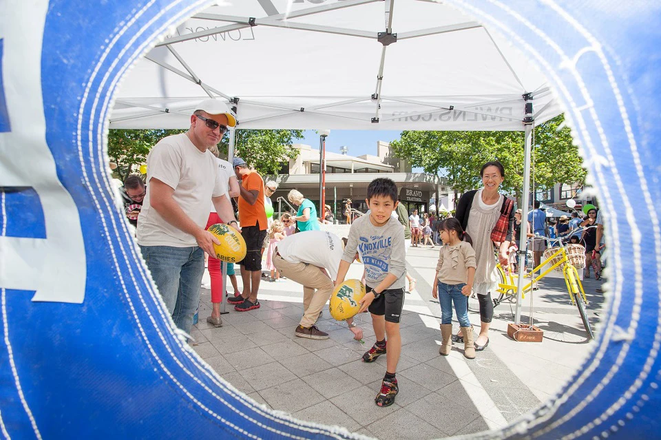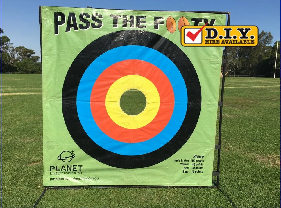 The ultimate game of skill! Pass The Footy requires contestants to smoothly pass the football through the target. Test your own accuracy and see how many consecutive targets you can score.