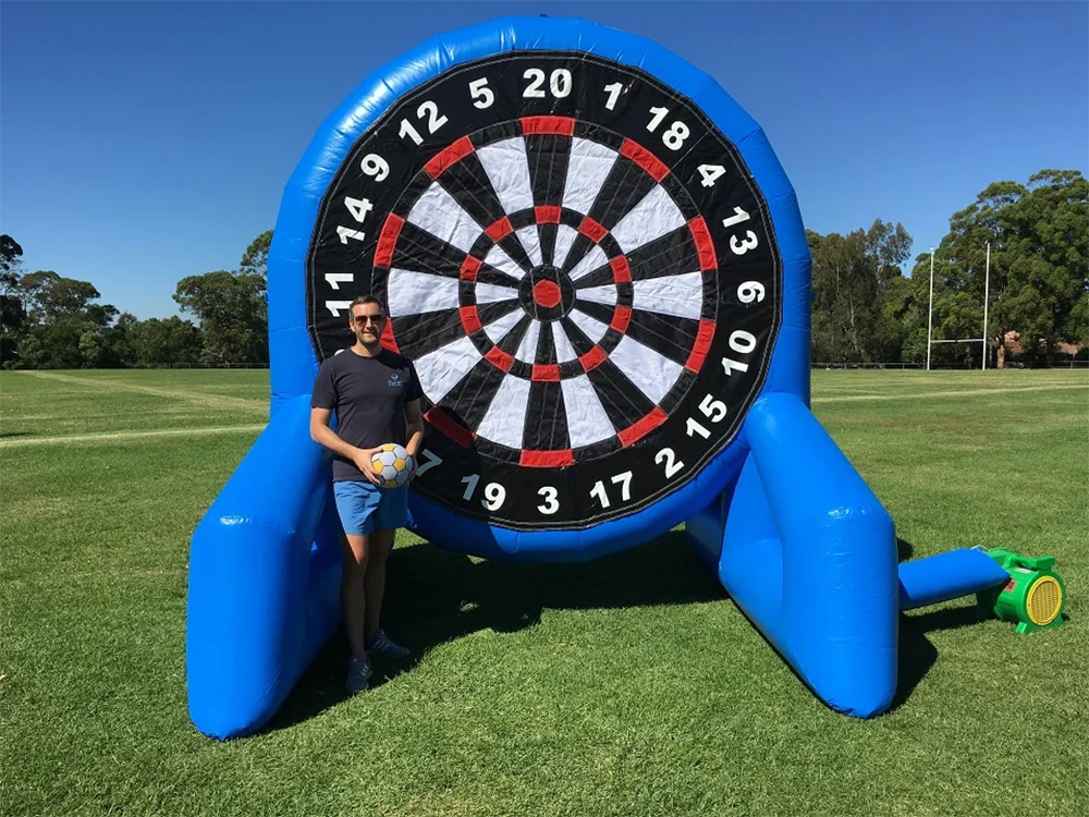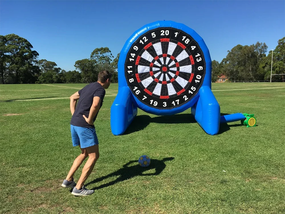 The best of 2 classic soccer games combined!! Challenge your team mates or colleagues to the skilful art of Soccer Darts OR a Soccer Shootout! This giant inflatable skill station is accessible to all ages so everyone will want a go. The ultra sticky ball and backboard will leave no doubt as to who gets the bulls-eye, or battle it out in a points shootout! And for promotional purposes, why not get your branding put on any type of velcro products and have contestants aim for special prizes? This game is sure to get people hooked as they try to outdo each other and score the most points. Guaranteed to draw a crowd of contestants and onlookers!